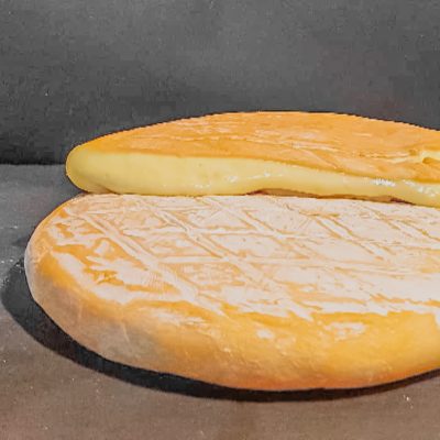 This GOLD MEDAL winning cheese is made with 100% A2 milk. It is creamy and delicious with just a hint of mushroom and garlic. Perfect any time of the day. Leave out for 30 minutes to allow it to ooze.